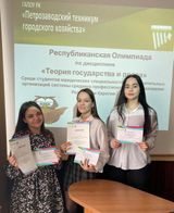 Петрозаводский техникум городского хозяйства на олимпиаде представили студенты группы ПСО-11, обучающиеся по специальности «Право и организация социального обеспечения»: Заяц Алена, Алексеева Анна и Янко Яна.