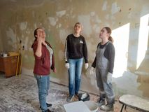 В начале обучения участники строительных отрядов с успехом освоили теоретический материал: изучили правила организации рабочего места, требования охраны труда и техники безопасности при выполнении работ, ознакомились с используемыми материалами и инструментами, рассмотрели способы и правила выполнения малярных работ. Первичные профессиональные навыки девушки получили на практических занятиях в малярной мастерской.