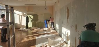 В настоящее время обучающиеся отрабатывают практические навыки на учебной практике в стенах учебного корпуса техникума и общежития. Выполняется косметический ремонт двух лекционных кабинетов, а также ремонт двух комнат в общежитии. Такая практика позволяет выполнить весь комплекс работ, соответствующий квалификационной харакеристике по получаемой профессии: подготовка поверхностей, шпатлевание сухими смесями, оклейка поверхностей, побелка и покраска различными материалами.
