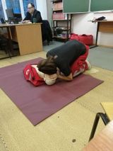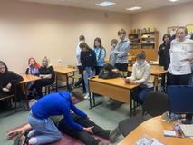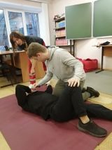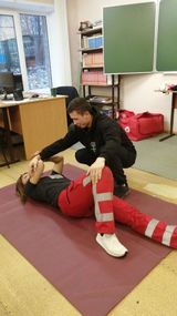 - выполнение практических заданий (что делать с человеком без сознания, когда он дышит и когда не дышит - как поместить пострадавшего в восстановительное положение, проводить сердечно-лёгочную реанимацию на специальных манекенах, остановка кровотечений, методы, правила, практика).