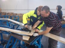 В ходе стажировки стажеры понаблюдали за производсвенными процессами в четырех цехах предприятия. Особый интерес вызвал участок по Ч.П.У. раскрою пиломатериалов по длине и заданными проектом углами. Студенты и мастера техникума поработали на участке изготовления стропильных ферм, собираемых по современной технологии на металлических зубчатых пластмнах - М.З.П., при помощи специального передвижного пресса. Студенты прошли подробный инструктаж и в итоге собственноручно собрали на стапеле комплект ферм для каркаса крыши небольшого дома. В цеху по изготовлению малогабаритных домиков для глэмпинга стажеры понаблюдали за процессом чистовой отделки этих симпатичных и уютных домиков для отдыха. По договоренности с руководством предприятия студенты сняли точные размеры образцов мебели, нарисовали 3Д-модели, для последующего изготовления подобных образцов на учебной практике в техникуме.