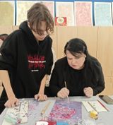 Вначале студентка группы МДР-2 Каковска Анастасия продемонстировала участникам мероприятия поэтапно ход выполнения работы "Цветы". Также ребятам показали, как превратить кусок обоев в оригинальную упаковку.