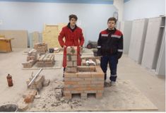 Проводит тренировки с ребятами мастер производственного обучения Федотов Николай Анатольевич: "Тренировки стартовали еще в ноябре. За полтора месяца студенты изучили требования техники безопасности, ознакомились с основными элементами печной кладки, научились правильно распределять технологические операции по порядку их выполнения, читать чертежи, приготавливать рабочую смесь с помощью миксера, работать на камнерезном станке, изготавливать простые готовые изделия (трубы с дымовым каналом), а также строить мини-печь. Это уже немало. Теперь нужно работать над качеством выполнения работы и скоростью кладки".