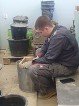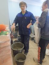 На площадках вместе с экспертами постоянно находятся волонтеры - добровольные помощники в организации работы площадки. Студенты Барышников Юрий (группа МПП-1б), Решетников Евгений и Романченко Роман (группа ММП-2) помогают на площадке "Печное дело", обеспечивая конкурсантов глиняно-песчаным раствором и кирпичами. Силаков Никита и Комляков Владислав (группа МПП-2) - волонтеры на площадке по компетенции "Плотницкое дело", занимаются подготовкой пиломатериалов. А студентки группы В-11 Канчар Диана и Хуттер Вероника следят за чистотой на площадках по компетенции "Лабораторный химический анализ".