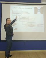 Елена Александровна Куприянович на уроке английского языка выстроила диалог со студентами на тему строительных материалов, принципиально не используя русскоязычную лексику.
