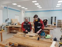 Сергей Петрович Королёв и Алексей Викторович Сафонов продемонстрировали, с какой ювелирной точностью и строгим соблюдением правил техники безопасности студенты выполняют работу по изготовлению столярных изделий.