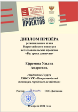 По итогам конкурса работа студентов техникума стала призером, авторам и руководителю проекта вручены Благодарственные письма.