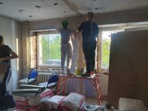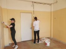 И вот стартовала основная практическая часть подготовки: отряду определили два объекта для косметического ремонта - учебный кабинет в главном корпусе техникума и помещение Карельского отделения Российского детского фонда. Такая практика позволяет выполнить весь комплекс работ, соответствующий квалификационной харакеристике по получаемой профессии: подготовка поверхностей, шпатлевание сухими смесями, оклейка поверхностей, побелка и покраска различными материалами.
