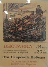 На выставке студенты прикоснулись к историческим событиям, подвигу освободителей от фашизма на территории Карелии, Ленинградской области. Большое значение в оттеснении противника в июне 1944 года значило форсирование Советскими войсками реки Свирь. На выставке продемонстрированы экспонаты сохранившиеся с тех времен, фото, портреты героев и безымянных солдат. Очень заинтересовали студентов образцы форменного обмундирования, стрелкового оружия, малой артилерии, плоты «ложной переправы» с манекенами в виде солдат.