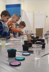 38 юных претендентов на право представлять свое дошкольное заведение попробовали свои силы в двух мастерских техникума. На "станции" по печному делу Федотов Николай Анатольевич рассказал о профессии, показал инструменты печника. Также у всех ребят была возможностьвыложить ряды печи-камина в соответствии с предложенной схемой. На "станции" по малярным работам вместе с Троценко Ириной Владимировной ребята осваивали работу с гипсом и красками. Каждый участник выполнял работу по подбору цветов и аккуратной окраске фигурки из гипса.