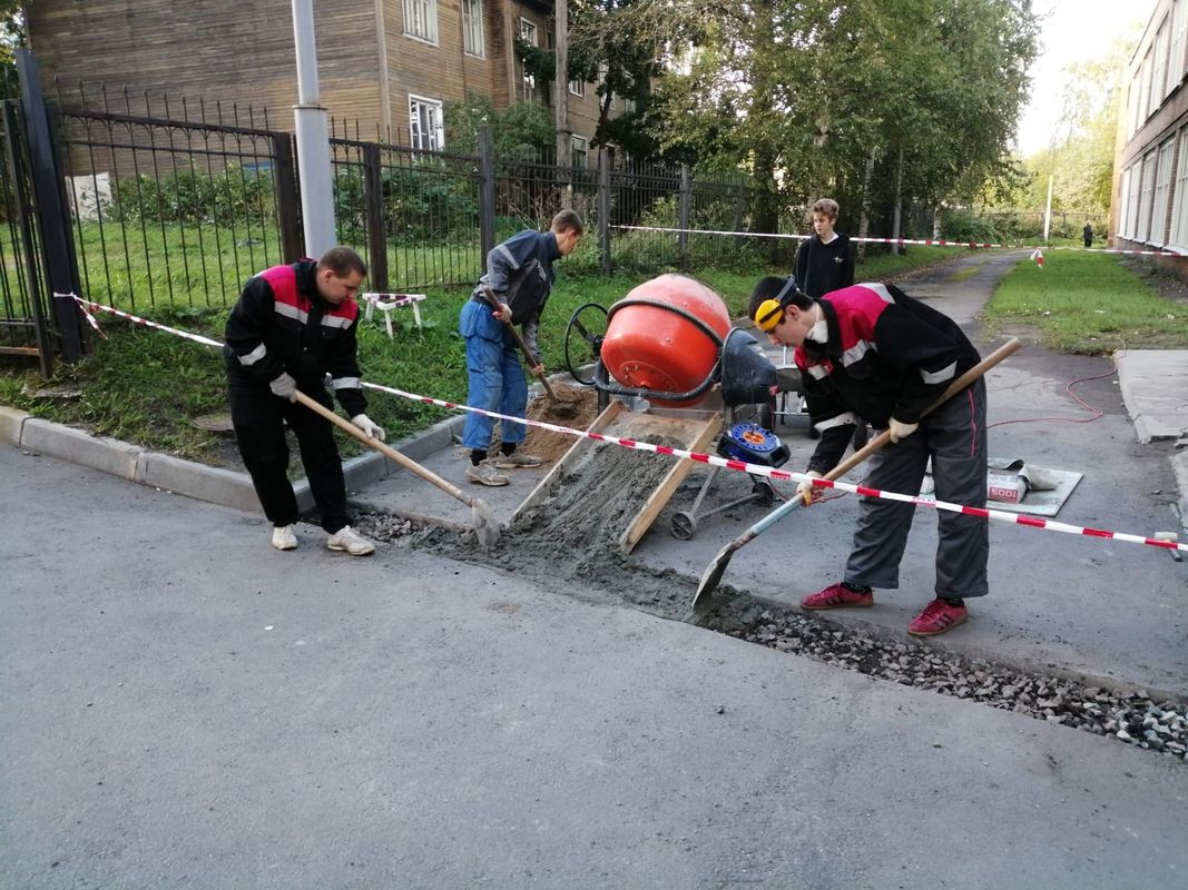 В ходе освоения профессионального модуля студенты второго курса, обучающееся по профессии «Мастер общестроительных работ», под руководством мастера производственного обучения Федотова Николая Анатольевича выполнили работы по частичному восстановлению крыльца и отводу воды от производственного корпуса по адресу Первомайский 56.