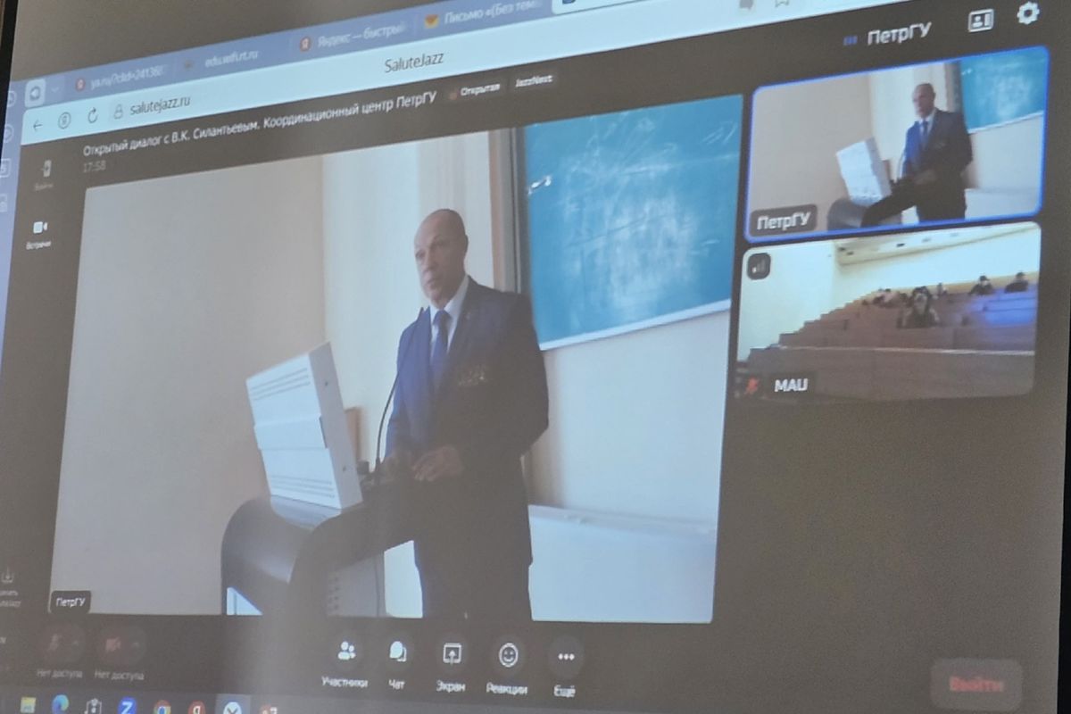 25 сентября студенты первого курса, обучающиеся по специальности "Юриспруденция", совместно с преподавателем истории Ивановой Кристиной Сергеевной приняли участие в онлайн встрече с Силантьевым Владимиром Константиновичем. Встреча с участником спецоперации была организована Петрозаводским государственным университетом.