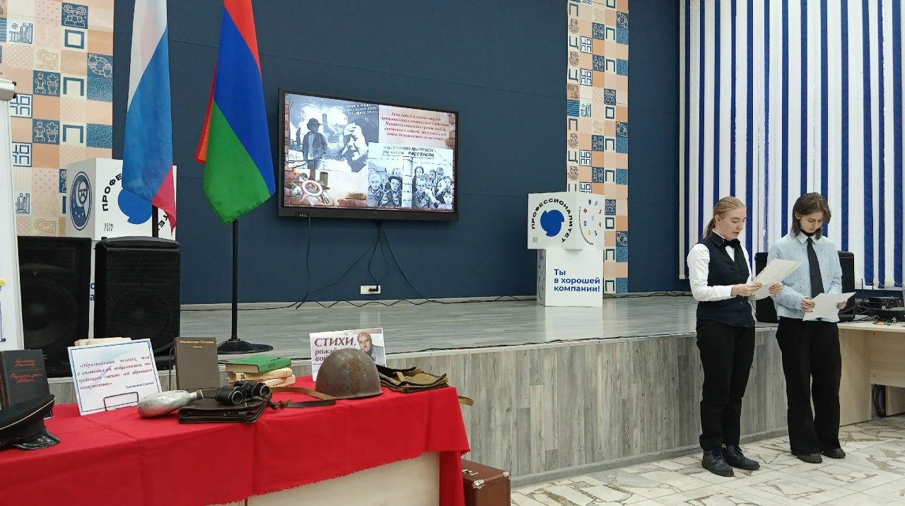 На прошлой неделе студенты нашего техникума приняли участие в республиканском литературно-музыкальном вечере-портрете «Константин Симонов: летописец великой войны». Данное мероприятие было организовано республиканским методическим объединением преподавателей русского языка и литературы с целью приобщения молодого поколения к литературному наследию и истории своей страны, выявления дарований и талантов в художественном чтении. Участники вечера погрузились в атмосферу тех лет, когда каждое слово писателя имело особую значимость и силу. Студенты представили публике инсценировки пьес Константина Симонова, читали наизусть стихотворения, выступали с презентациями.