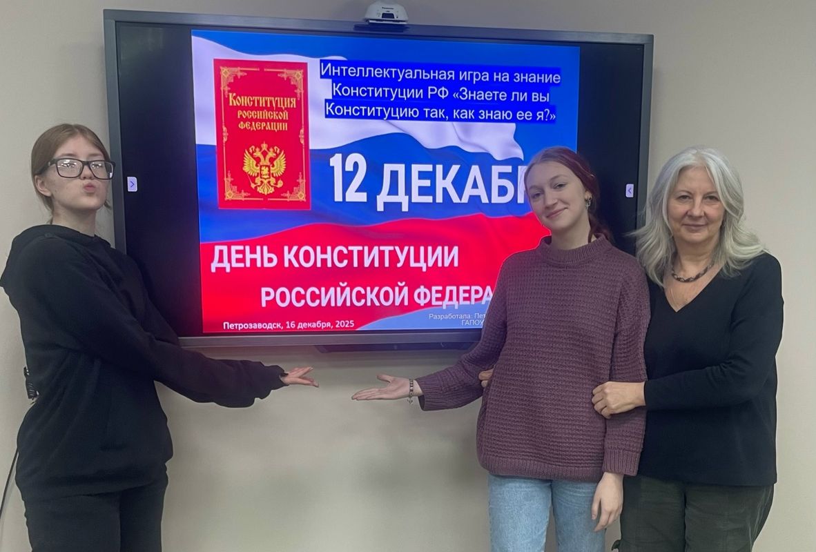 16 декабря 2025 г. студенты Петрозаводского архитектурно-строительного техникума, обучающиеся на первом курсе по специальности "Правоохранительная деятельность", приняли участие в Республиканской интеллектуальной игре «Знаешь ли ты конституцию так, как знаю ее я».