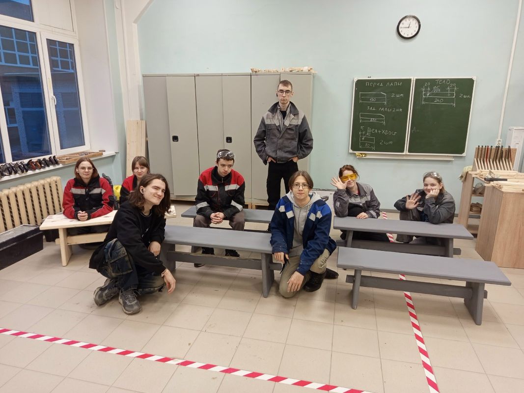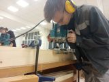 В течении трех дней 15 участников погружались в процесс создания изделия из дерева по заданным чертежам. Ребята размечали, точили лезвия инструментов, пилили вручную и при помощи торцовочной пилы, фрезеровали, зачищали и клеили. На площадке царила дружественная атмосфера, хотя это и были соревнования!