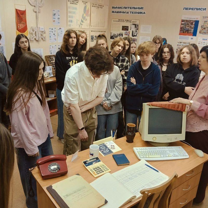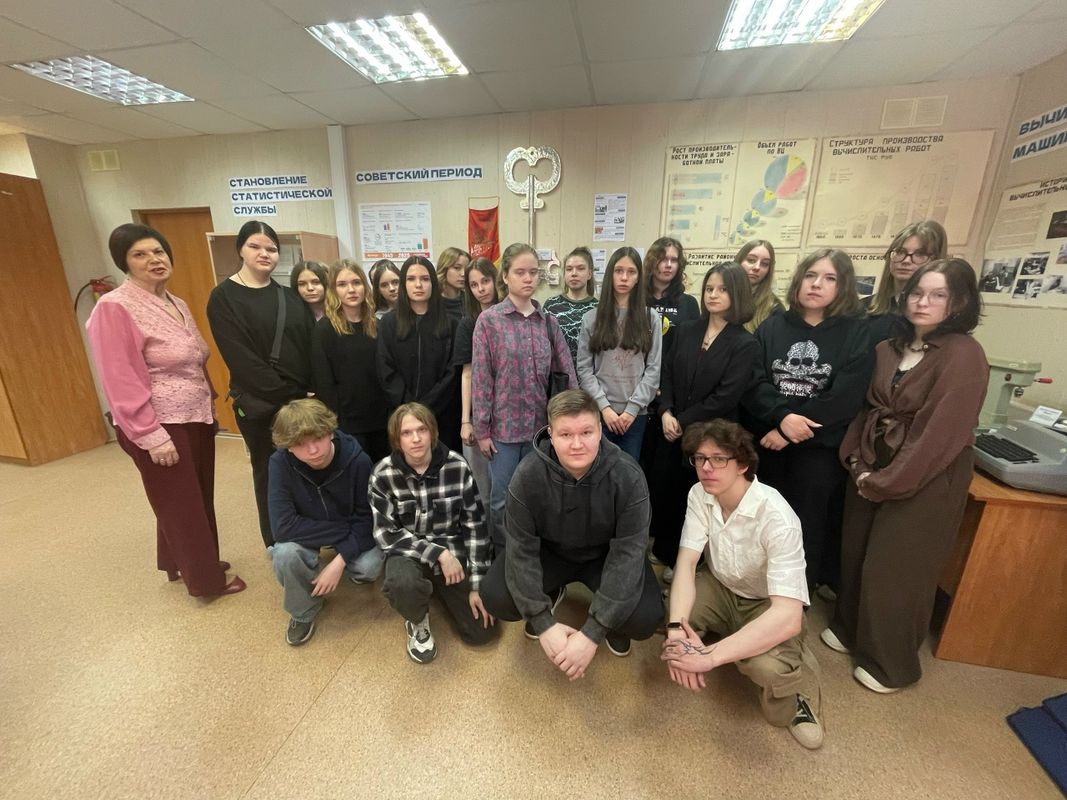 Однако, пожалуй, самым ярким и запоминающимся моментом экскурсии стало посещение музея Карелиястата. Здесь перед глазами студентов предстала настоящая цифровая летопись региона. Старинные документы, отражающие первые попытки сбора данных, раритетная вычислительная техника, которая когда-то была вершиной технологий, и уникальные атрибуты переписей разных лет – всё это вызвало неподдельный интерес у юных гостей.