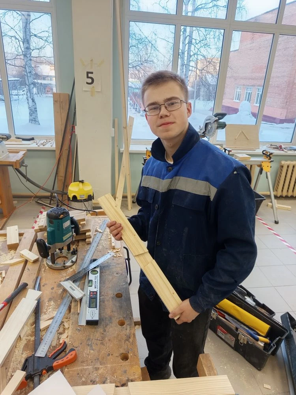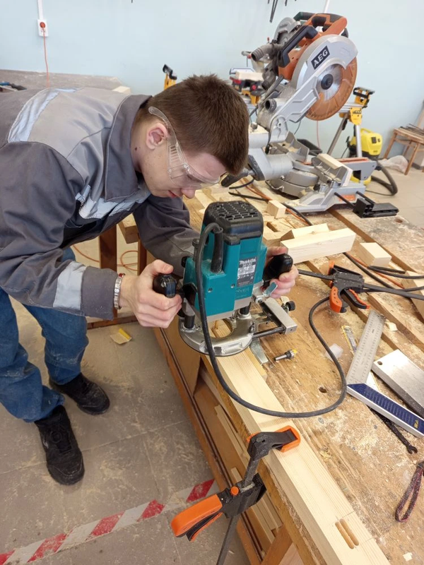 В столярной мастерской Петрозаводского архитектурно-строительного техникума кипит работа: студенты - будущие участники Регионального этапа чемпионата по профессиональному мастерству "Профессионалы" оттачивают свое мастерство в компетенции "Плотницкое дело".
