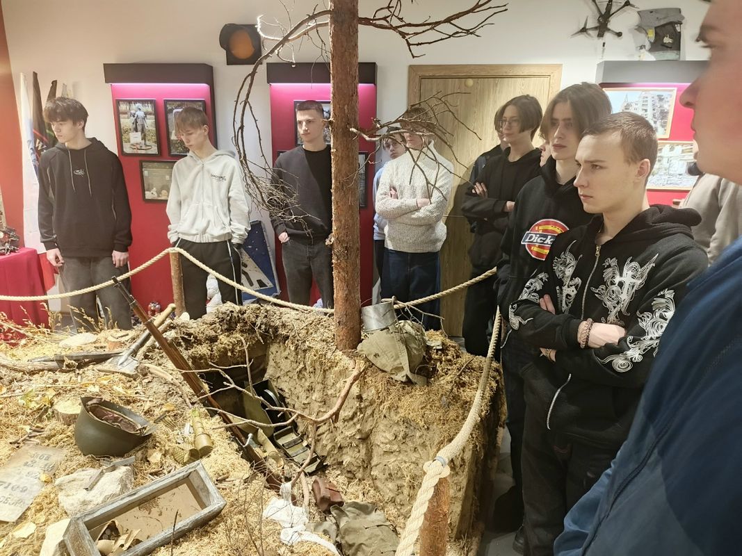 Студенты первого курса Петрозаводского архитектурно-строительного техникума в рамках уроков Истории посетили экспозицию Центра Воинской Славы Петрозаводска (проект Благотворительного фонда «ОСНОВА», Общественный филиал Музея Победы РФ).