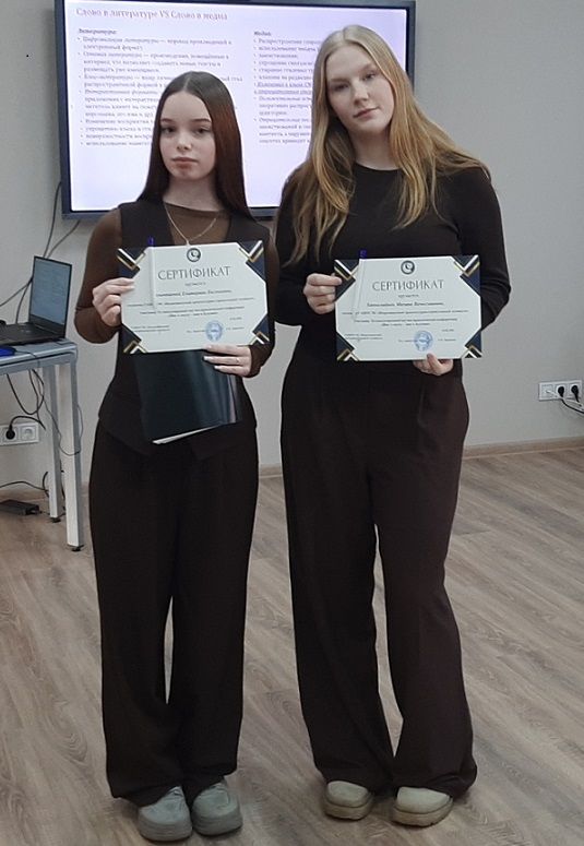 Тему «Как цифровая эпоха меняет русский язык и литературу» раскрыли на своей секции Ханнолайнен Милана и Халимпиева Екатерина, студенты 1 курса специальности "Строительство и эксплуатация зданий и сооружений", научный руководитель – Гончарук Ольга Николаевна, преподаватель русского языка и литературы. Девушки своим исследованием подтвердили динамичность развития русского языка под влиянием цифровых технологий.